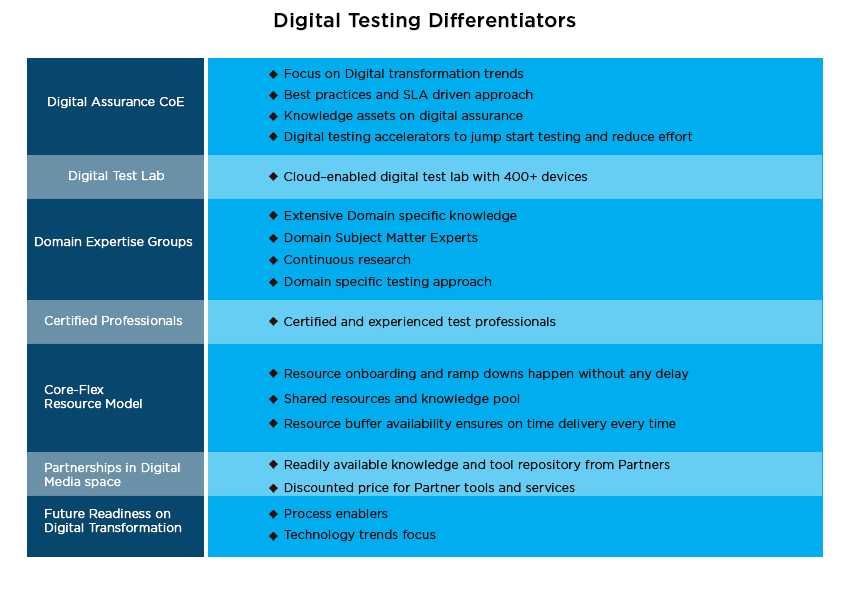 TGGTECH's Digital Assurance arrangements address the multifaceted needs of computerized testing. We endeavor to do this by leading extensive testing over your advanced esteem chain and the whole computerized environment. The arrangement draws on our immense involvement in the advanced area and use our esteem including components, for example, reusable test resources and in-house suite of testing apparatuses and quickening agents. Our Digital Assurance arrangements rise above practical approval of Social, Mobile, Analytics, and Cloud stack (SMAC) and include interoperability, organize capacity, execution, and security angles.